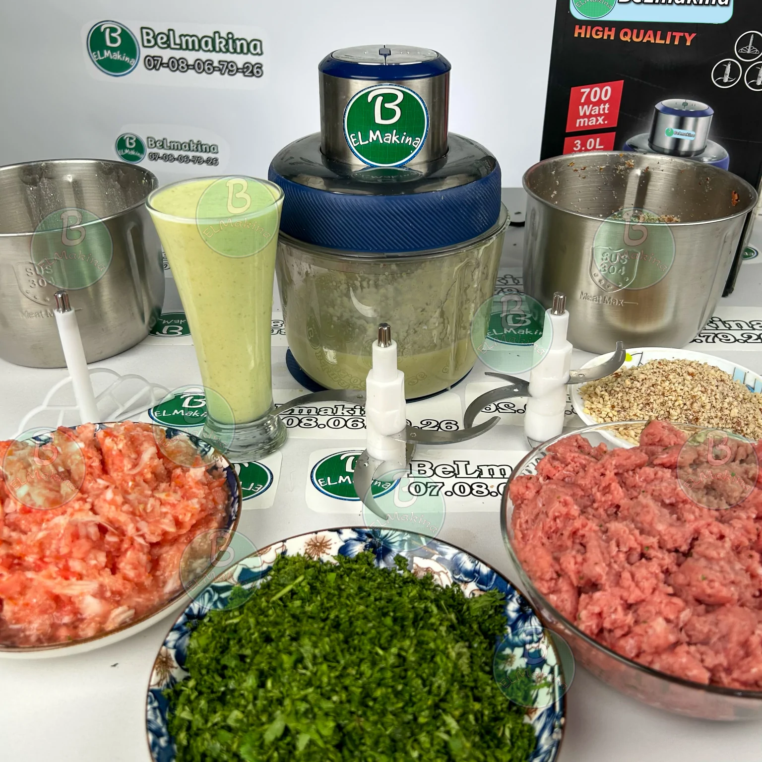 المطحنة صالحة للحوم بأنواعها، الخضر و الفواكه، العصير، المكسرات، فستق، لوز.. السلطات.. المعجنات، كيك، كريب بدقة عالية